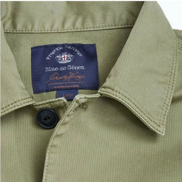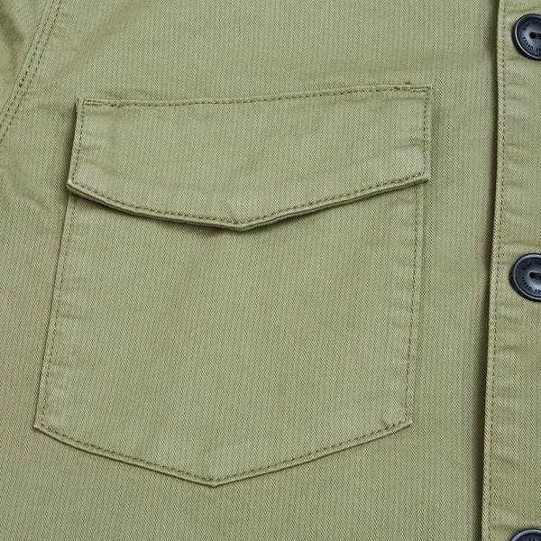 Crafted from a heavy herringbone cotton fabric the Annata Mil Shirt is perfect for layering up or can be used as a shirt on its own. Featured with two large front pockets with hidden buttons, flag badge at hem and buttons made of Corozo nut. Herringbone cotton fabric Cotton 98%, Elastane 2% Straight Cut Two large front pockets with hidden buttons Flag badge Buttons made of Corozo nut