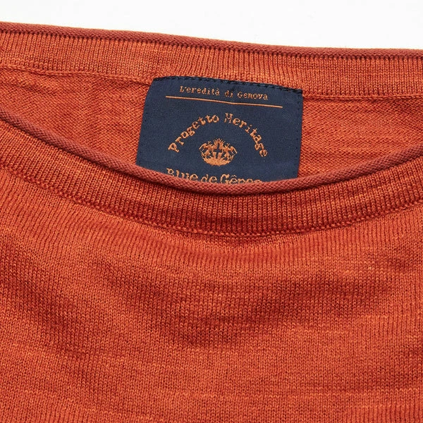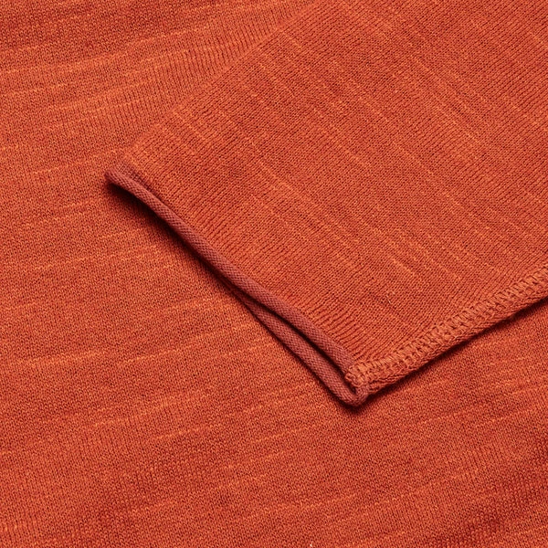 A lightweight long-sleeved jumper with roll-edge hem at neck and sleeves. Knitted in a cotton/linen blend quality. Super soft due to the cotton and natural structure to to yearn due to the linen. Regular fit Cotton/linen blend 14 gauge knit Flatlock deco stitch Made in Italy