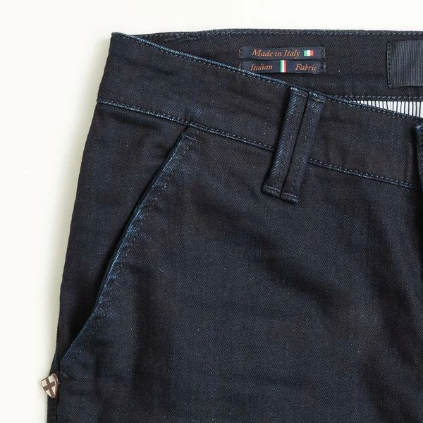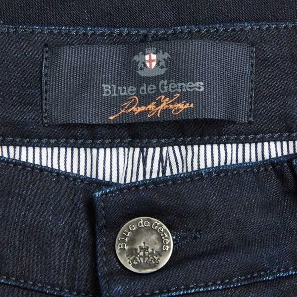 Features: Paulo double blue jeans is the Blue de Genes regular fit chino in denim fabric. Featured with chino pockets, double belt loop details, double-lined back pockets, triple stitch details and the Blue de Gênes flag rivet subtly placed at the right front pocket. Classic regular chino fit Double blue denim wash Contrast lining Double belt loop details Double-lined back pockets Button fly Flag rivet at right front pocket Branded buttons Made in Italy Composition: Cotton 99% Elastane 1%