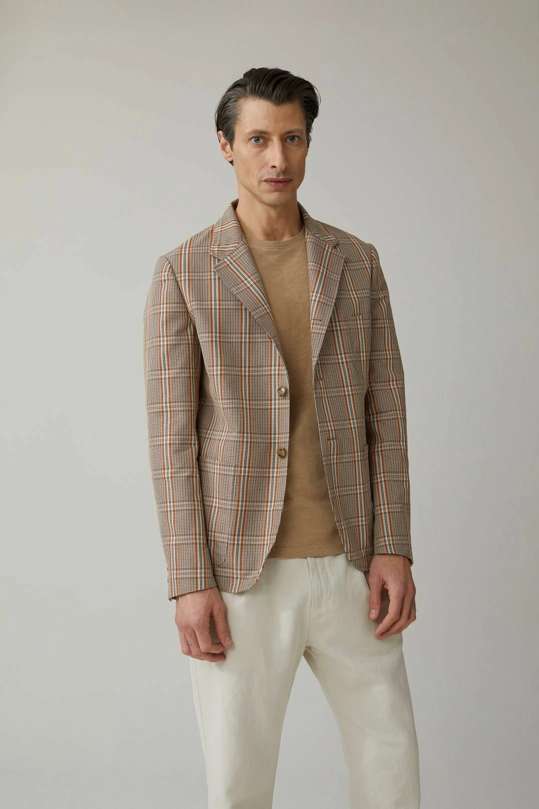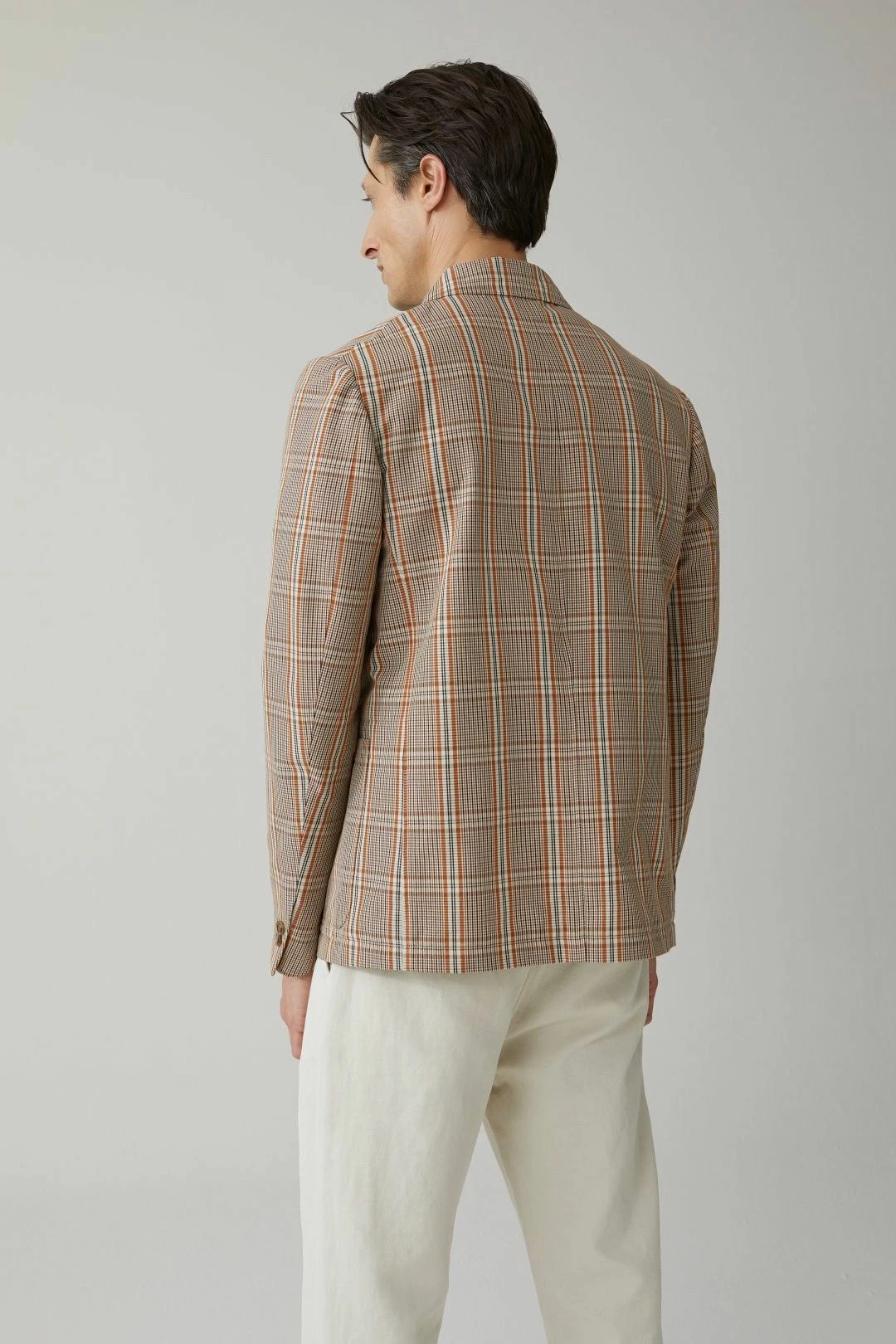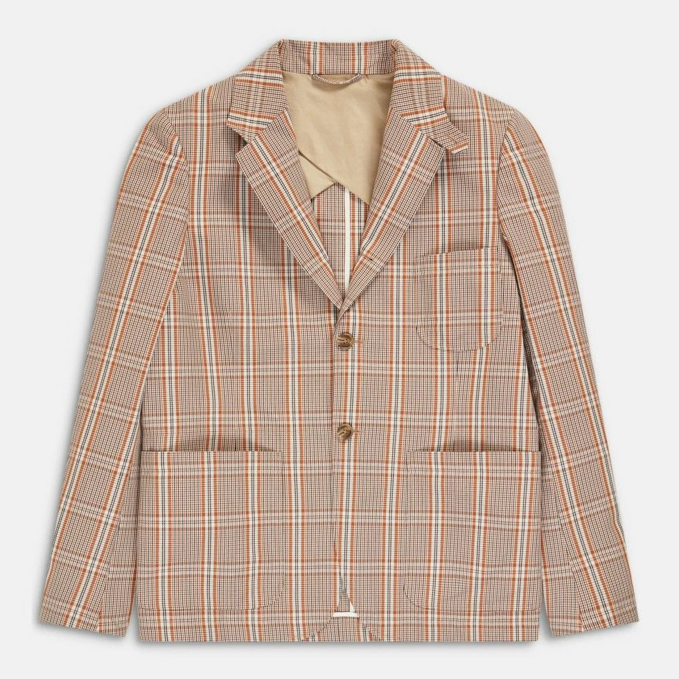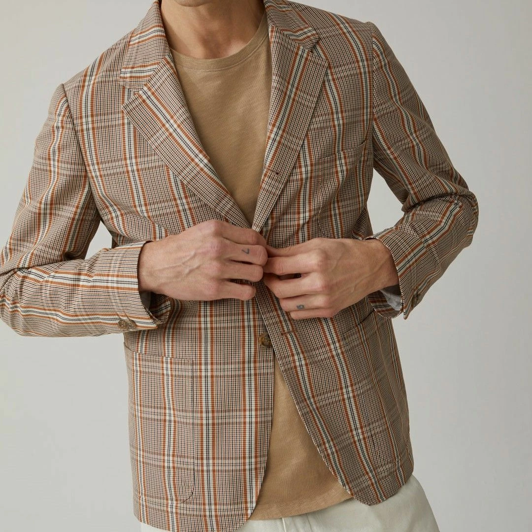 Poches plaquées, boutons en optique corne. Doublure partielle en sergé de coton, pour plus de solidité, avec poche intérieure.