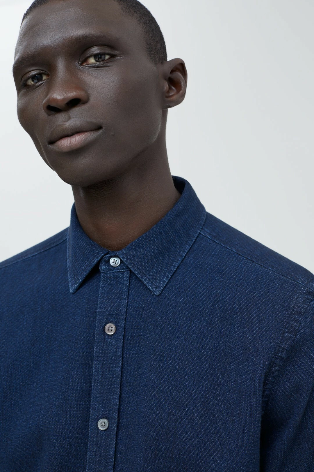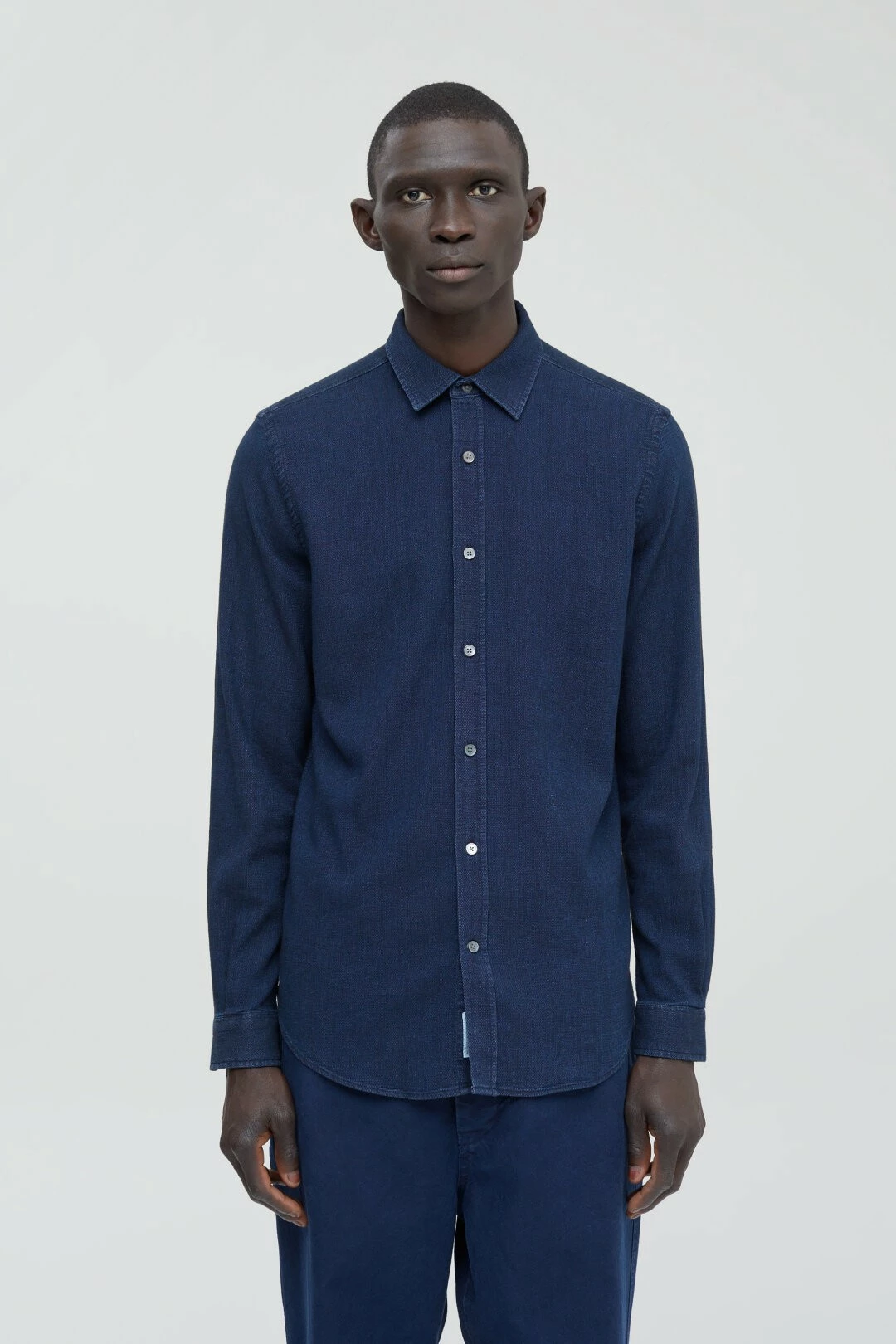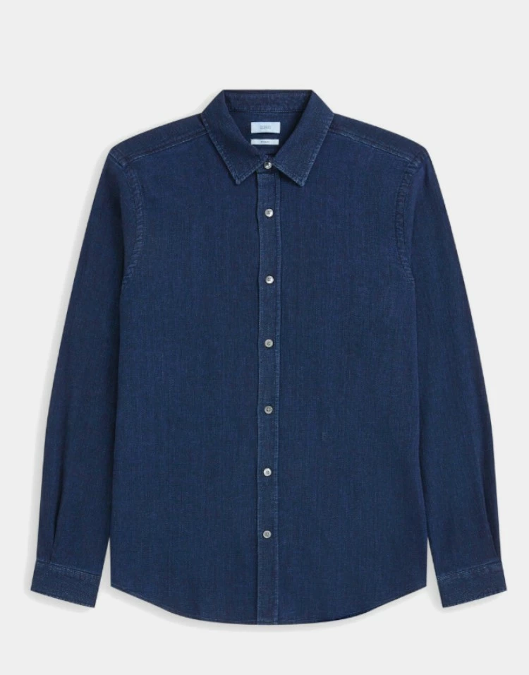 Chemise légère et structurée en mélange coton et viscose, avec un aspect délavé indigo et un toucher ultra doux.