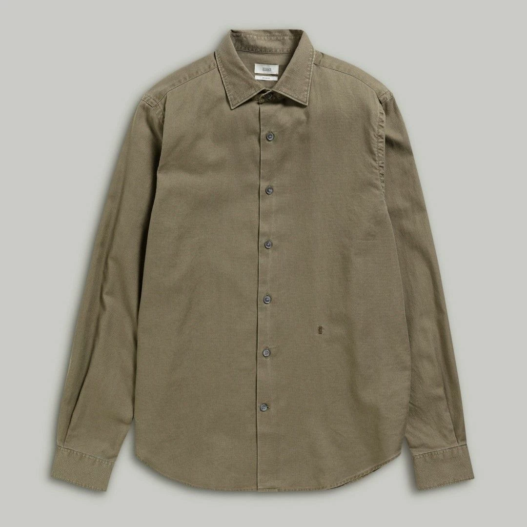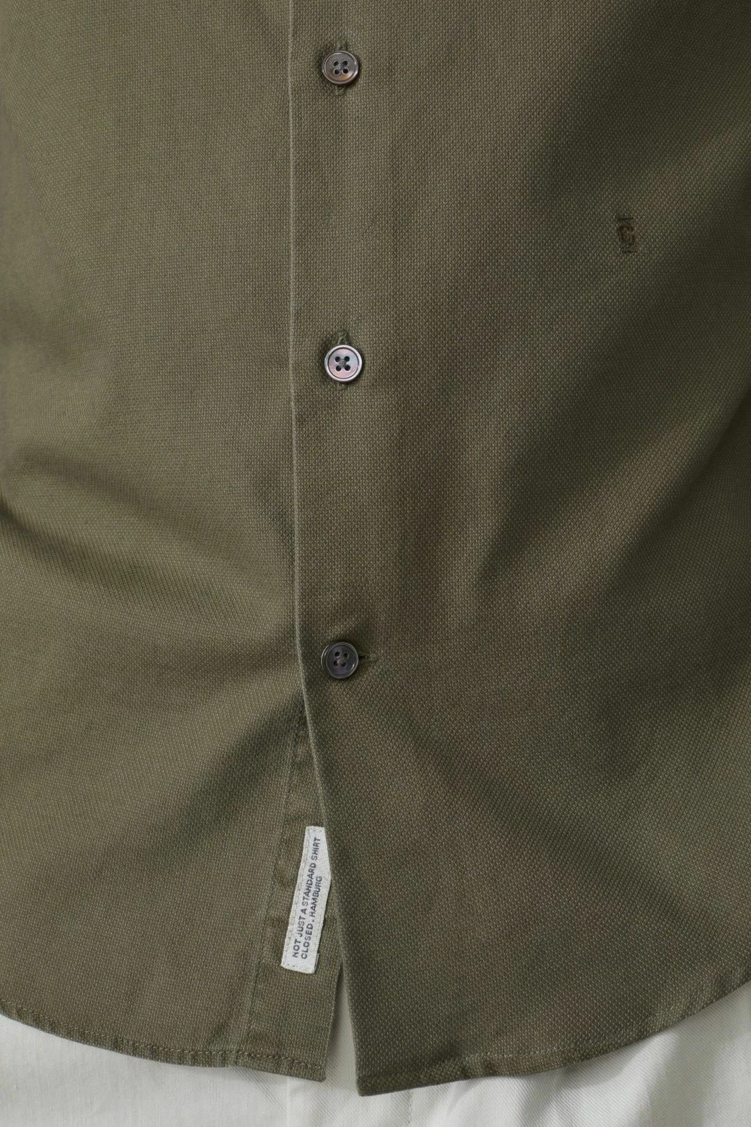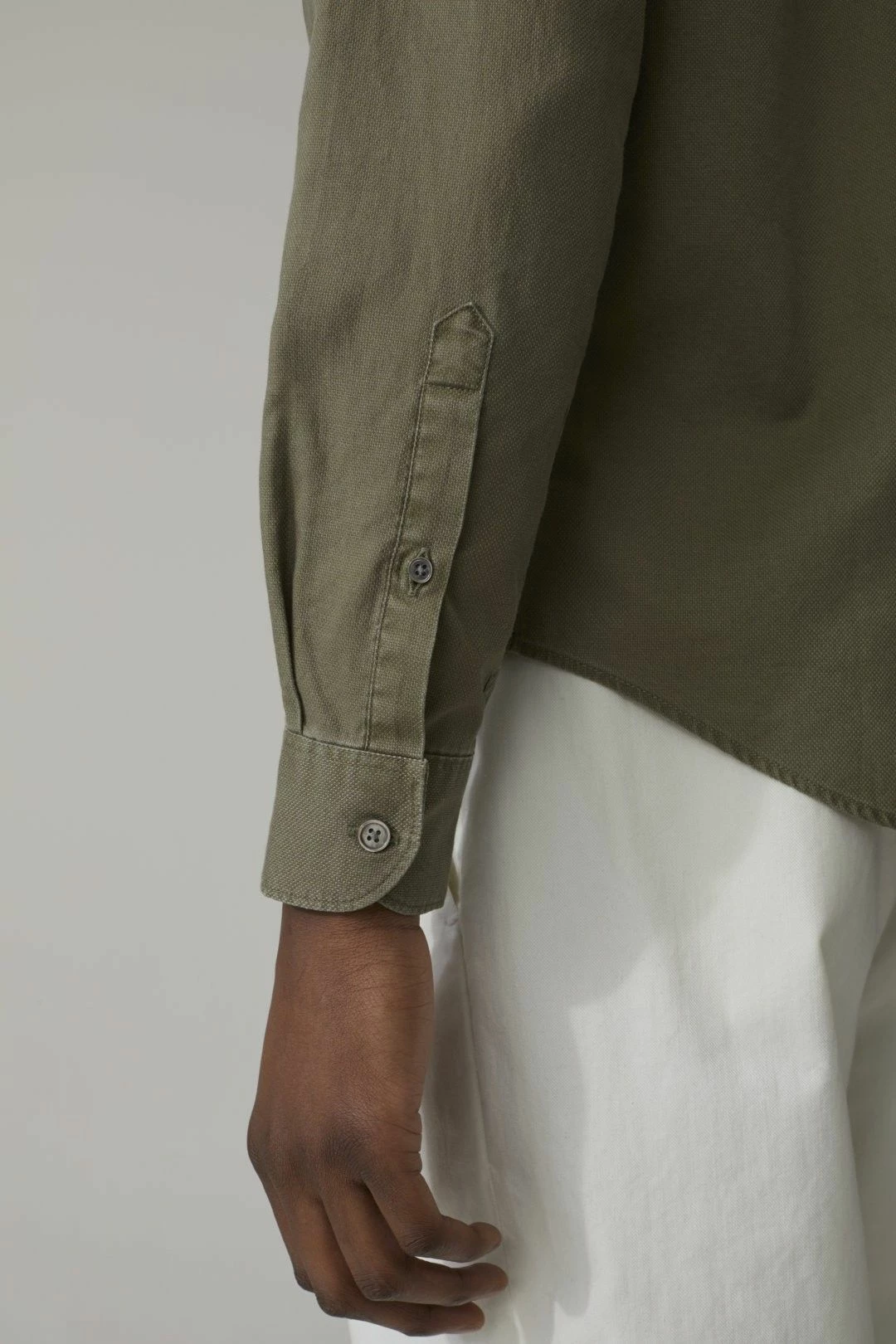 La chemise de Closed avec col souple à pointes écartées, en piqué de pur coton, avec une teinte kaki légèrement optique délavée.