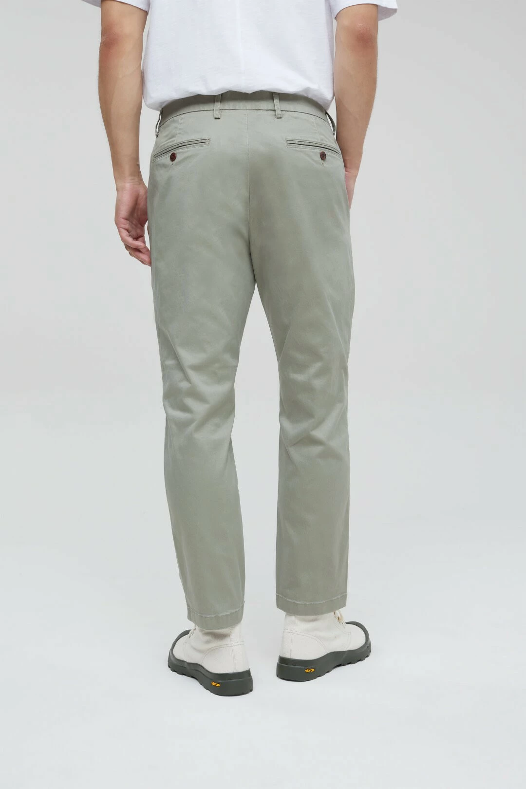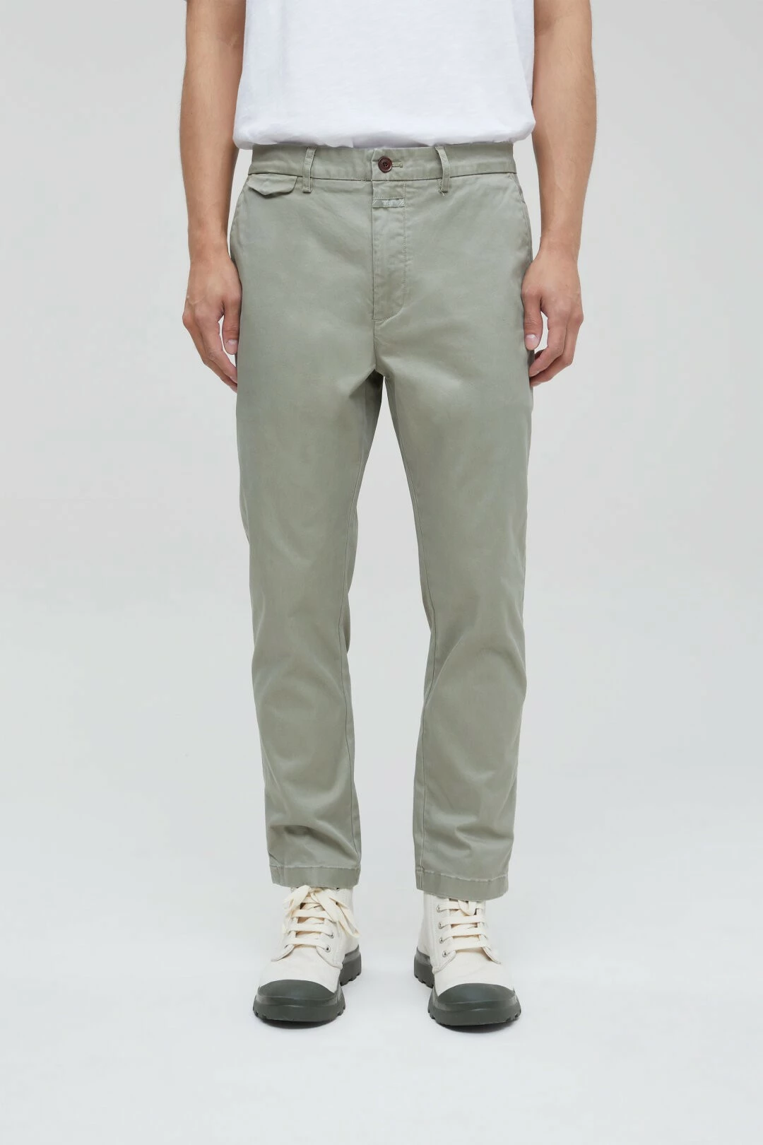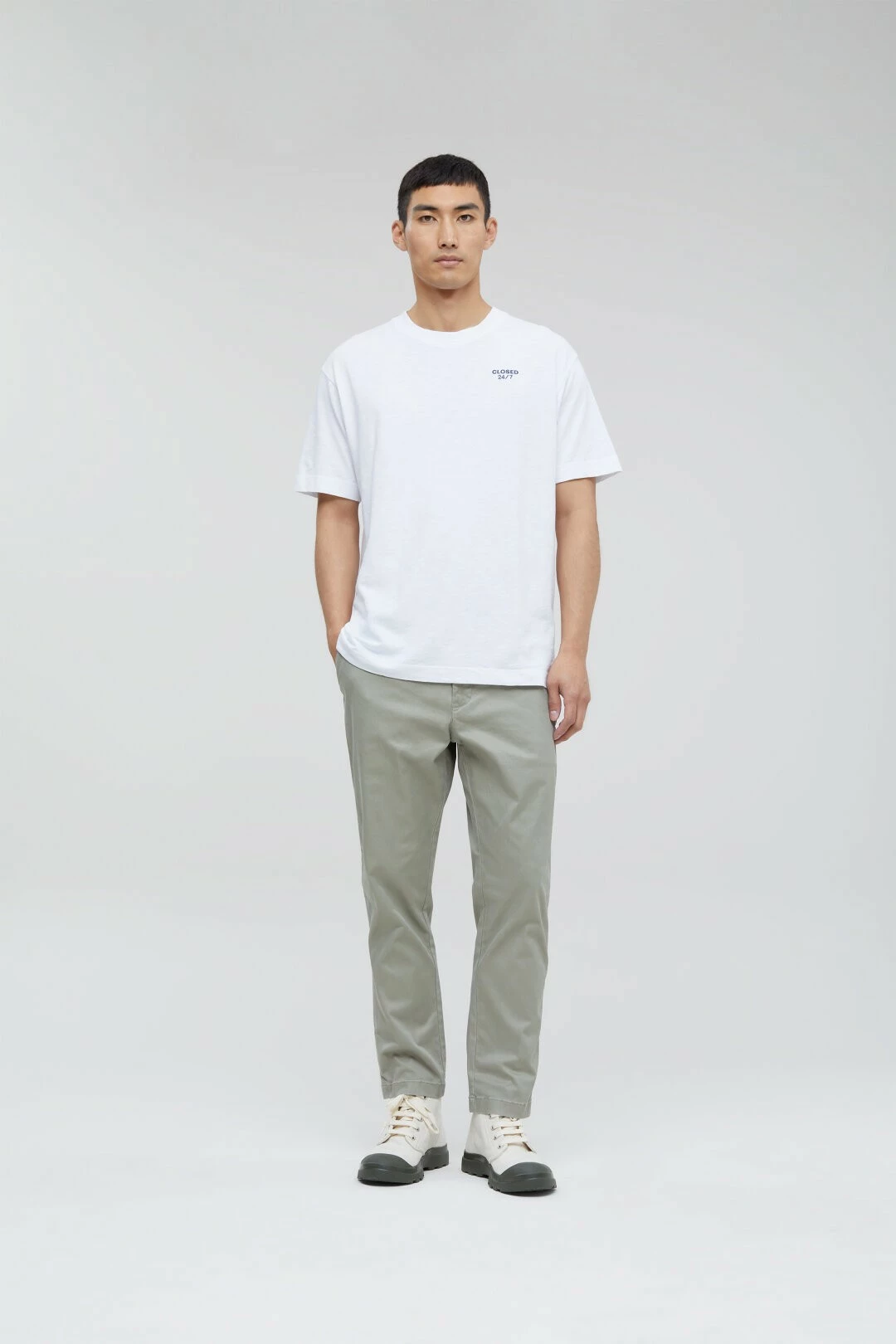 Pantalon chino de coupe régulière en twill de coton très robuste avec pourcentage de stretch et au toucher doux. Poches latérales, mousqueton Closed amovible et poches boutonnées avec broderie C- du même ton derrière. Ce modèle est proposé en longueur 30 seulement (ou 7/8ème). Les tailles proposées ici sont la version US – pour votre taille française, il suffit de rajouter 10. Regular Fit / Enfourchure basse / Jambe fuseau Le modèle (1,86 m) porte la taille 32×30 Jambe intérieure taille 32×30 env. 71 cm Composition : 98% coton, 2% Elastane