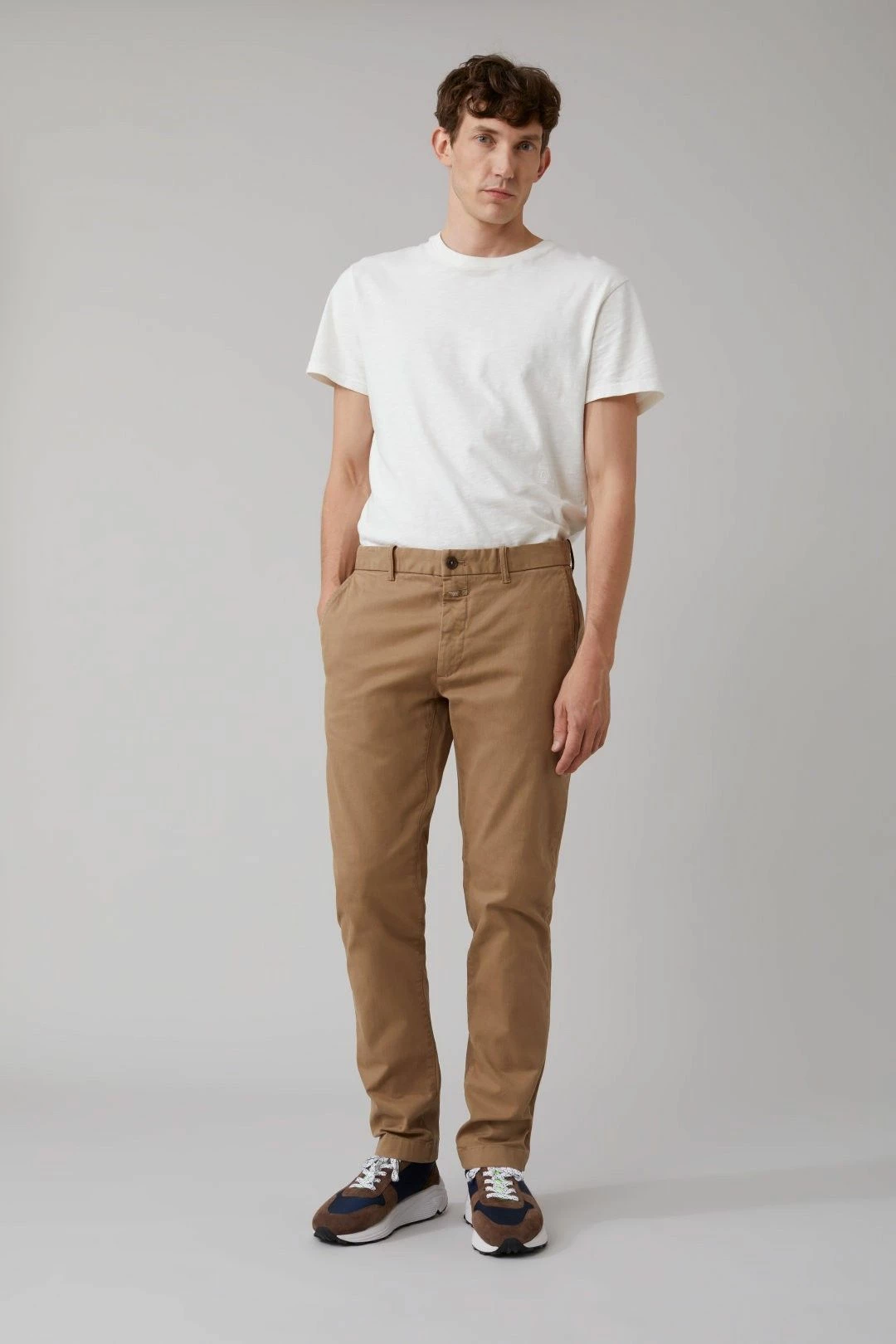 Une très belle pièce de Closed – un chino 5 poches en twill de coton Pima (qui lui confère un toucher très doux et très agréable à porter), proposé en Granite (Gris), Deep Dune (Beige), Sea Tangle (Vert), et Vert pâle (Faded Green). Il présente une braguette à boutons, des french pockets, des poches passepoilées et rivet à l’arrière. Il a une coupe slim fit, avec une taille légèrement basse et une jambe étroite. Fabriqué en Chine Composition : 98% Coton, 2% Élasthanne