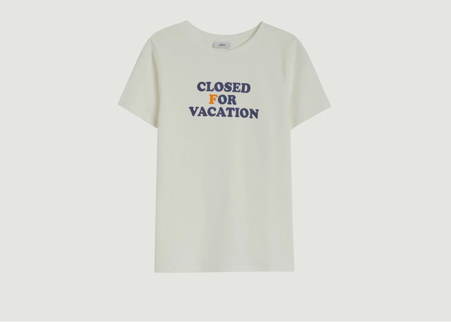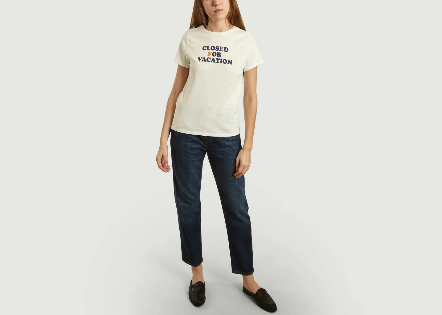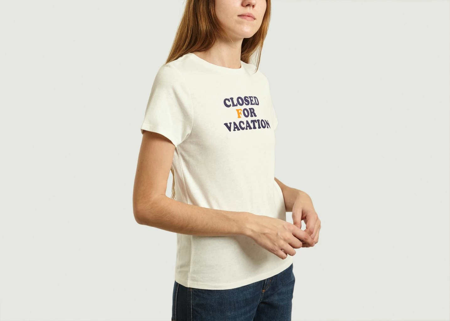 Ivory compact cotton-linen jersey t-shirt with “Closed for vacation” print, short sleeves, round collar, tone-on-tone sewn finish, straight cut.