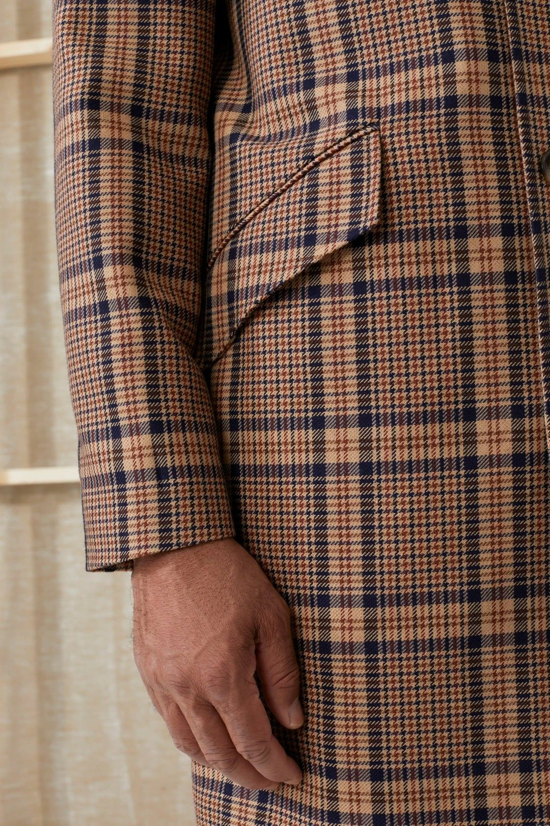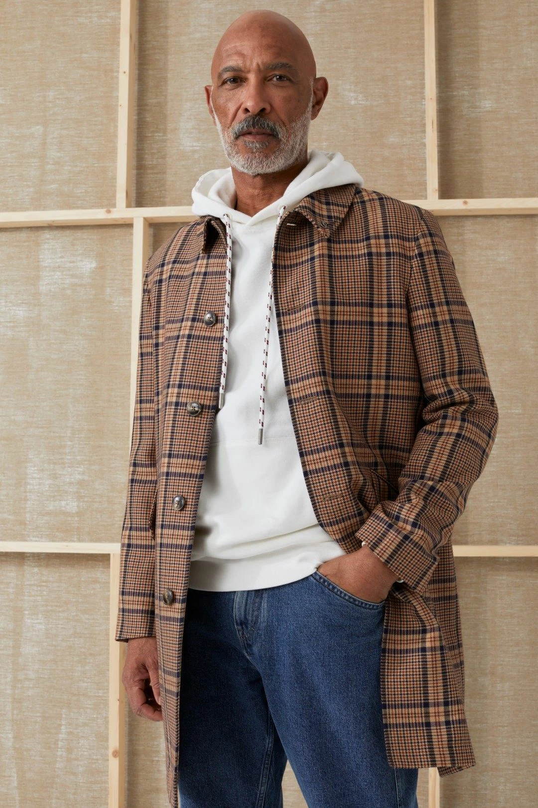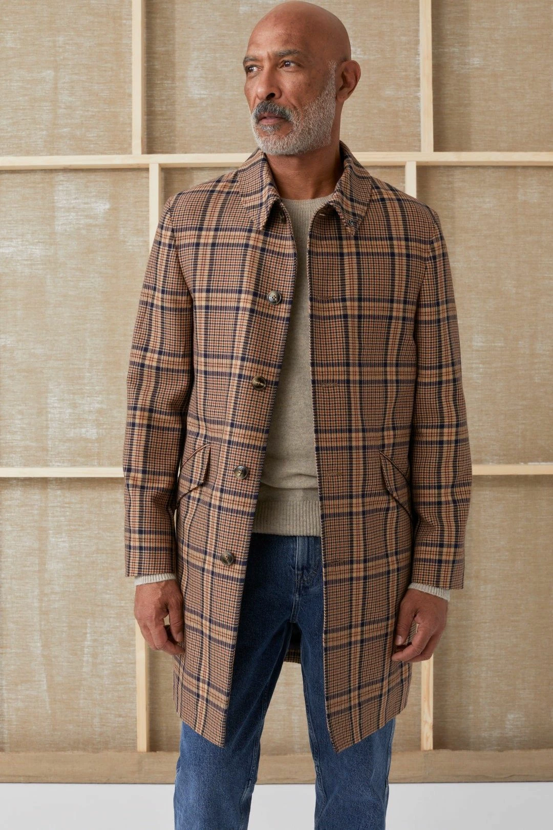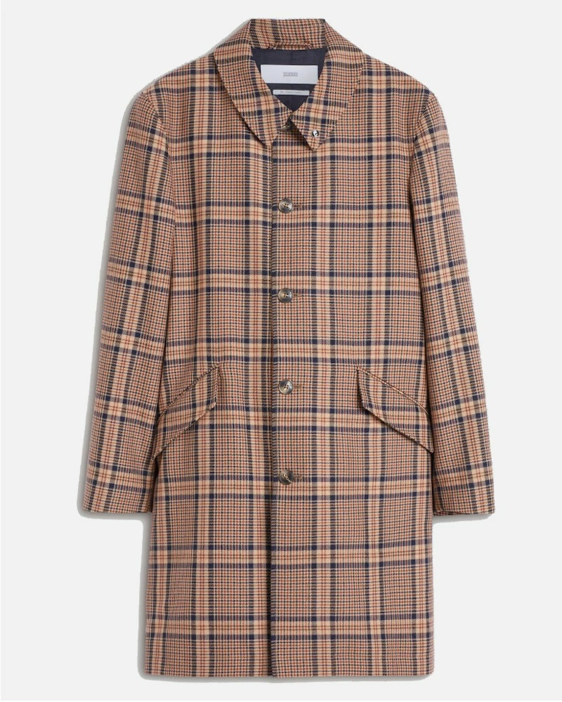 Un très beau manteau pour la mi-saison et le début de l’hiver. Légèrement fitté, il est en mélange italien de fils de laine avec des poches à rabat avec un fin passepoil, et des coutures passepoilés à l’intérieur. Dimension: env. 99 cm pour une taille M Fabriqué en Roumanie Composition : 46% Laine, 46% Polyester, 8% Polyamide – Doublure partielle de couleur unie 100% viscose.