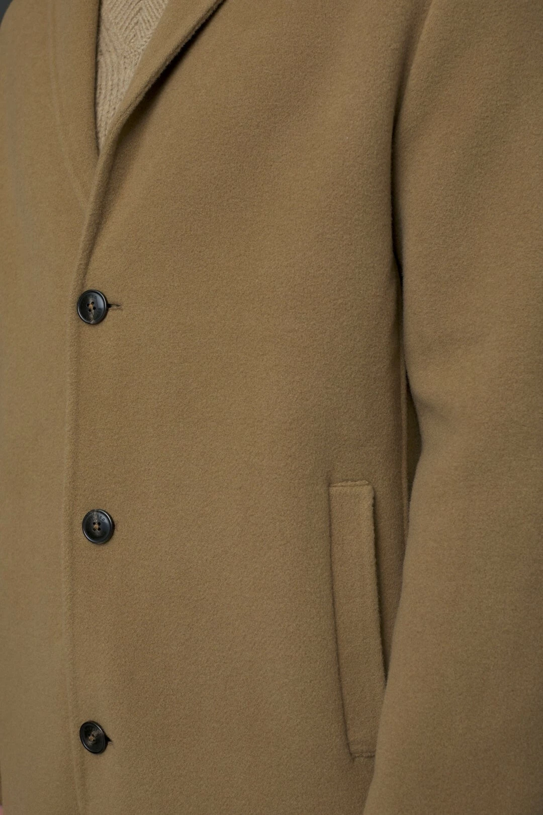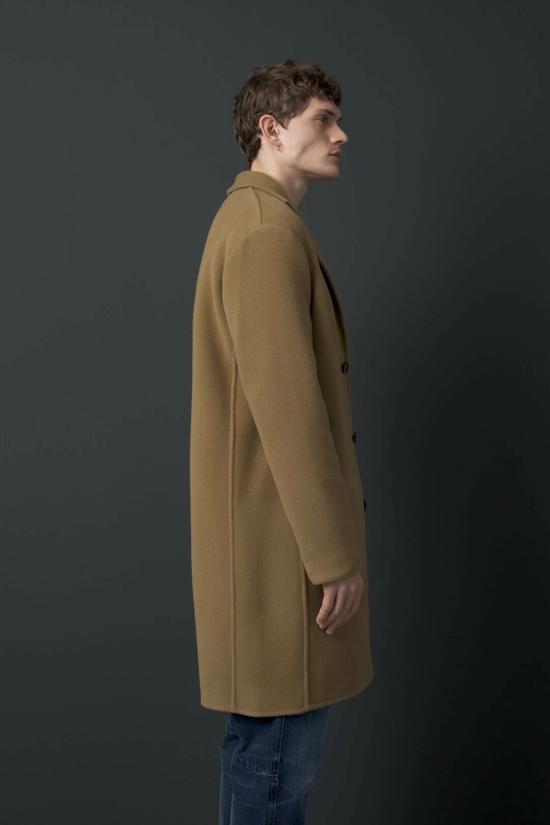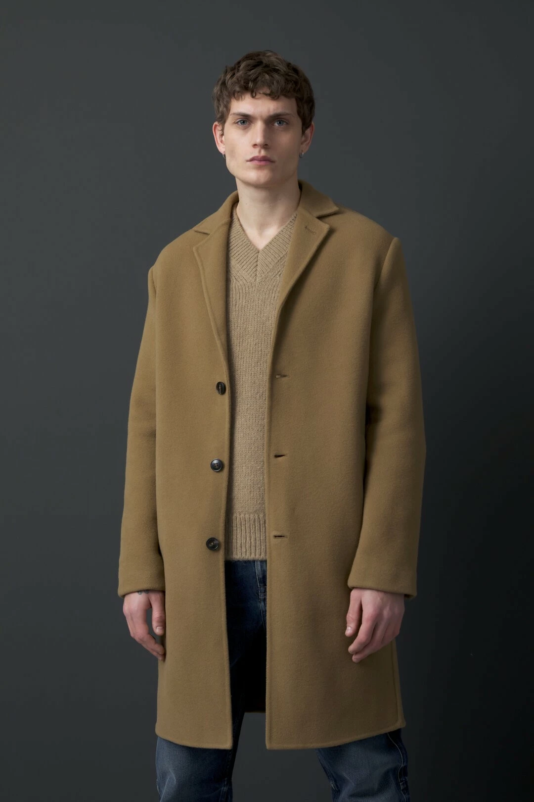 Une très belle laine, ultra douce, pour un manteau très classe, avec une finition élaborée et des bords partiellement cousus à la main, ses boutons aspect corne et ses poches latérales.