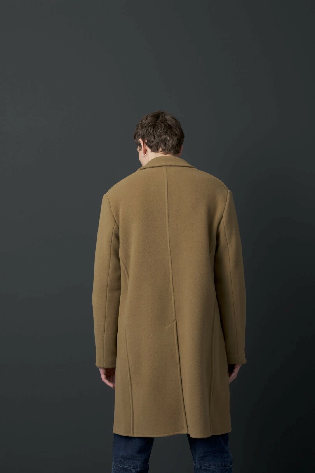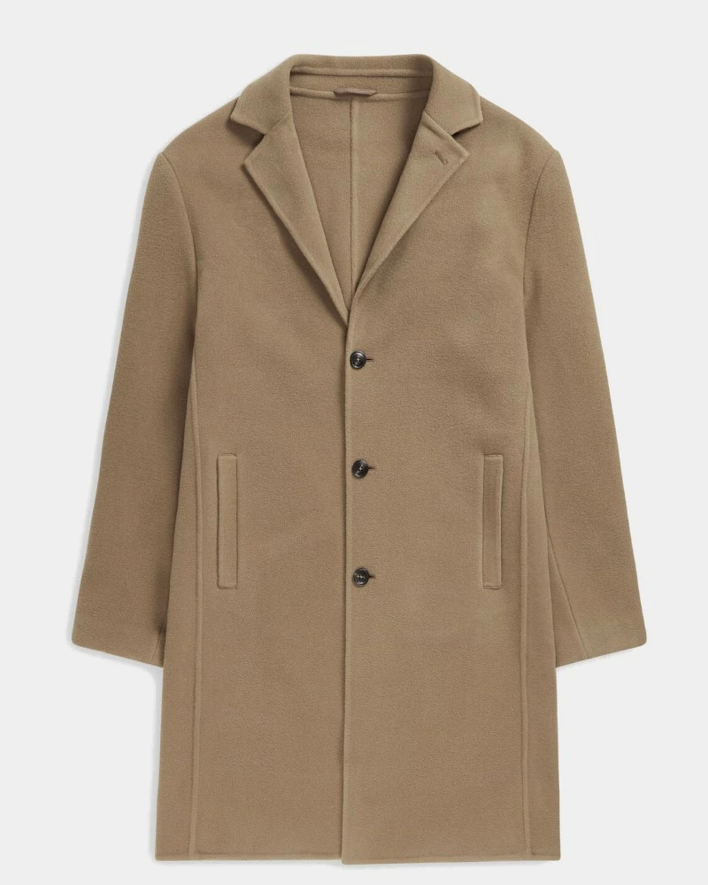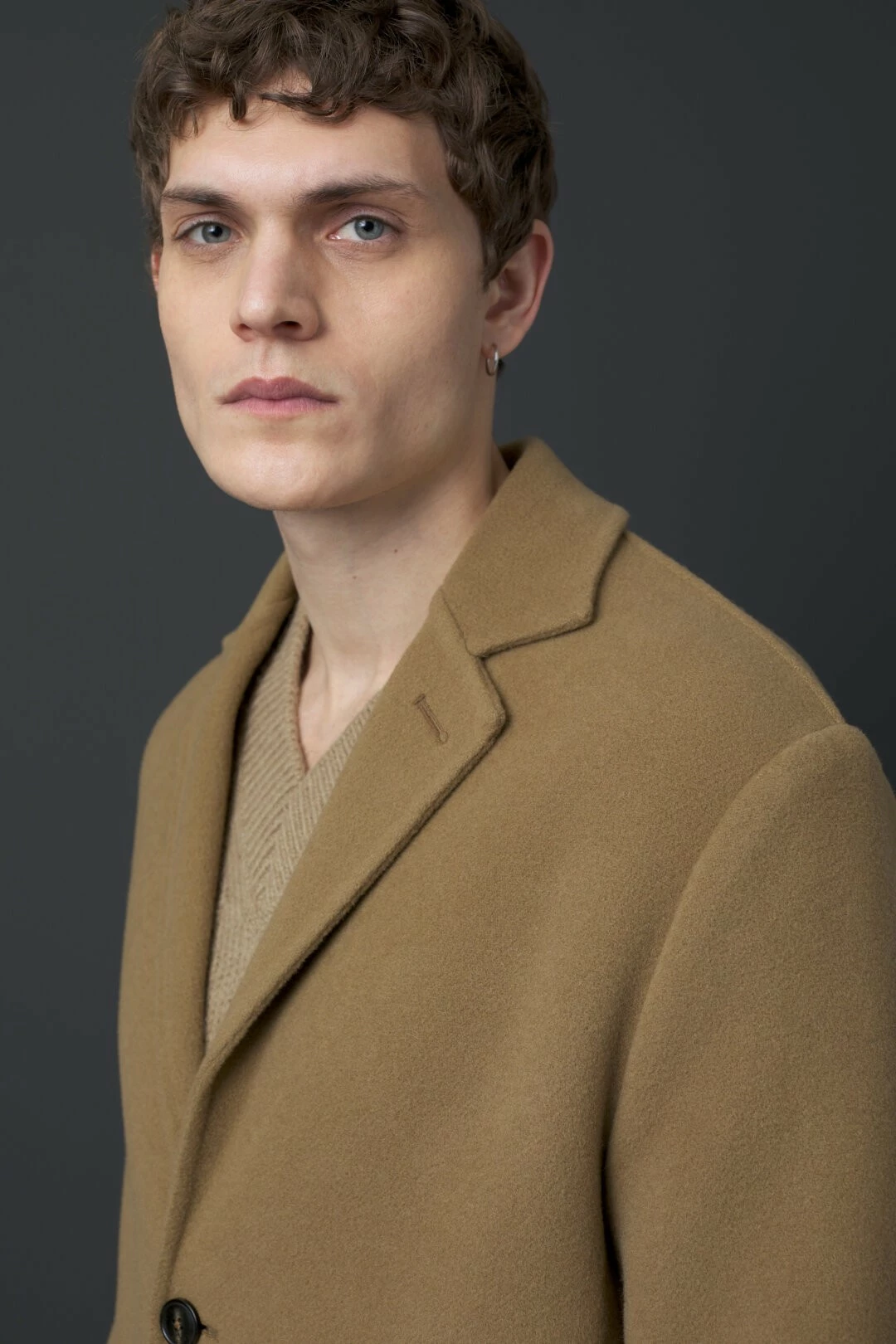 Une très belle laine, ultra douce, pour un manteau très classe, avec une finition élaborée et des bords partiellement cousus à la main, ses boutons aspect corne et ses poches latérales.