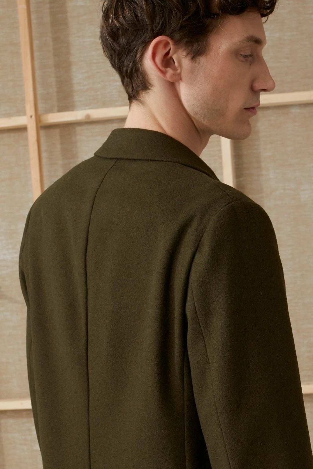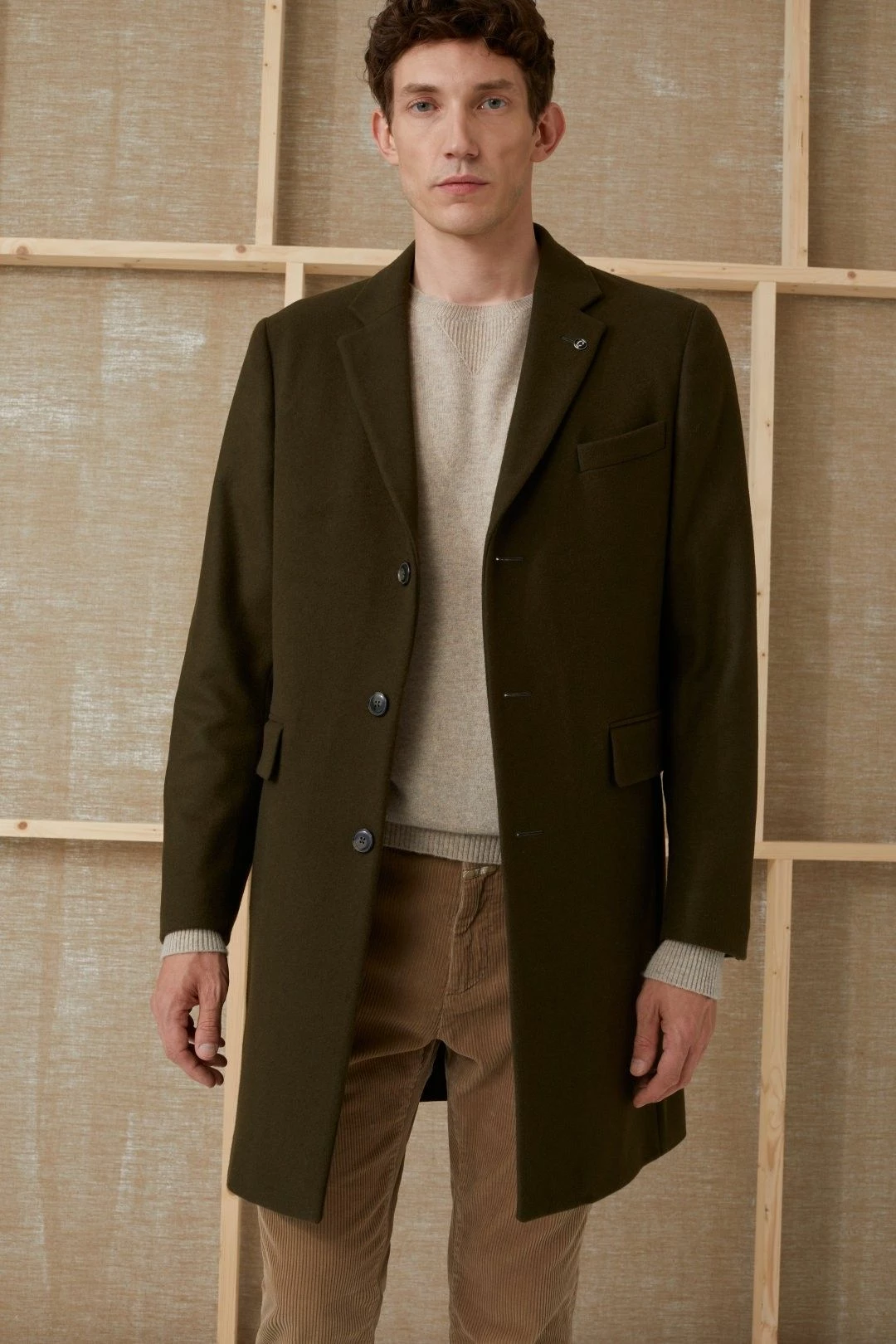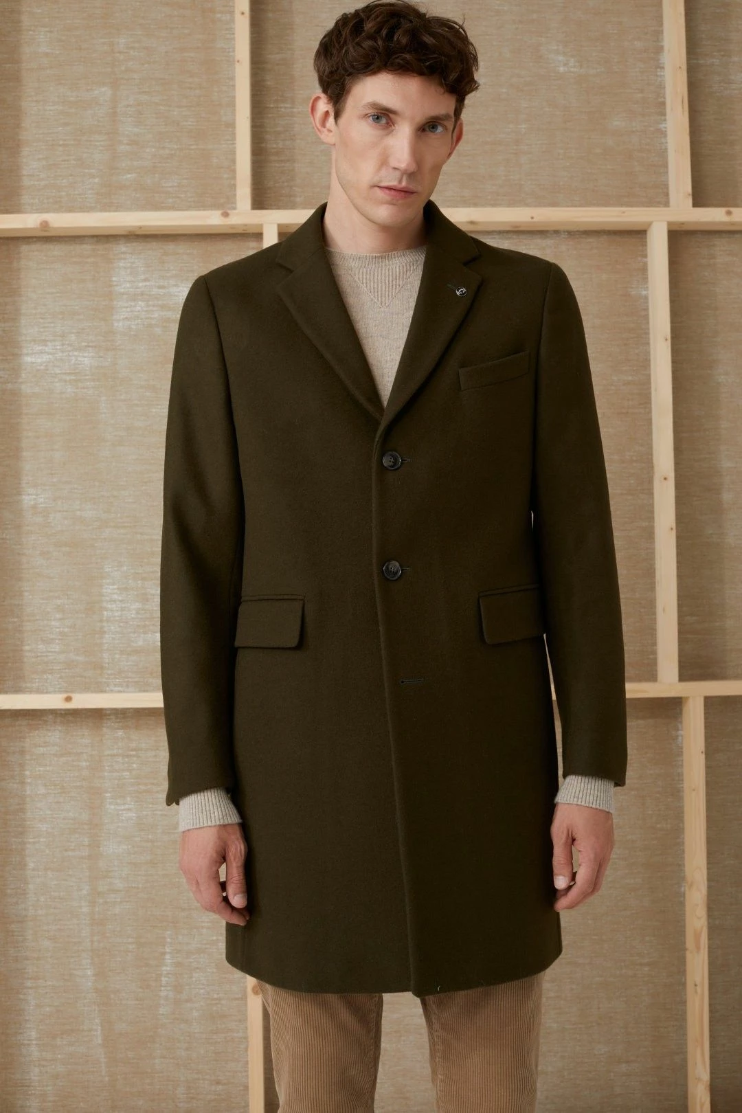 Un très beau manteau pour la mi-saison et le début de l’hiver. Légèrement fitté, il est en mélange italien de fils de laine avec des poches à rabat avec un fin passepoil, et des coutures passepoilés à l’intérieur. Très doux au toucher, et très épuré dans sa coupe, il est très versatile et vous accompagnera tout l’hiver. Guide des tailles 46 : S 48 : M 50 : L 52 : XL 54 : 2XL Ce manteau taille normalement, nous vous conseillons de prendre votre taille habituelle. Fabriqué au Maroc Composition : 80% Laine, 20% Polyamide Doublure intérieur: 100% Coton Doublure manches: 100% Polyester