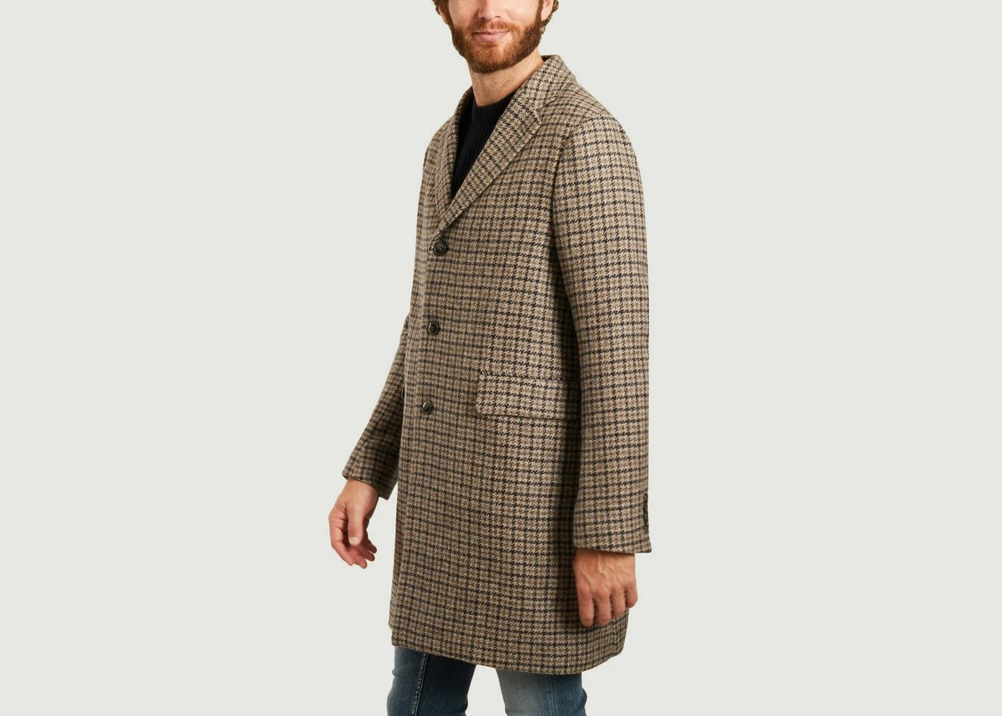Mid-length checked coat made of 100% Italian virgin wool of very light and soft quality. Straight cut, it has a classic collar, long sleeves and 2 flap pockets, with piped inside seams and without lining. Don’t hesitate to fall for this mid-length plaid coat signed Closed. Passe-partout, it will be easy to wear it with chino pants and a turtleneck sweater.