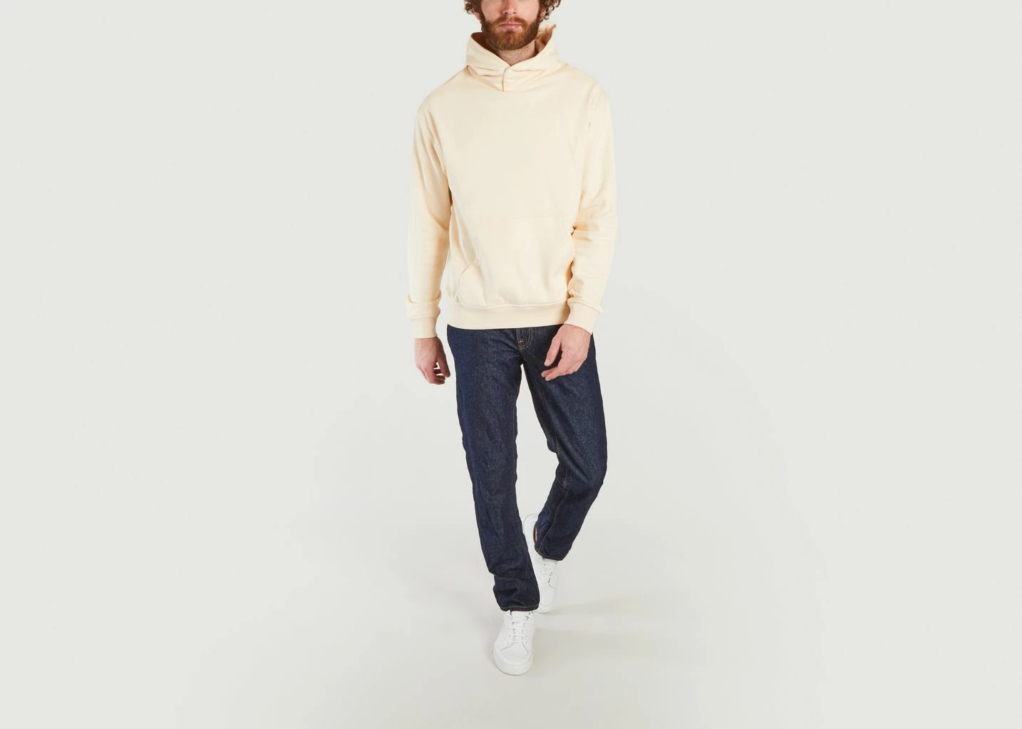 Hooded pullover with button-down collar, lined hood and kangaroo pocket. Compact sweatshirt fabric in pure organic cotton with soft brushed inner side. Ribbed edging at the cuffs and hem. Relaxed Fit This sweatshirt features a classic design that is easy to pair with a sportwear or urban-inspired outfit. Its large kangaroo pocket makes it a very practical everyday item of clothing. It goes easily with jeans and trainers for a casual style.