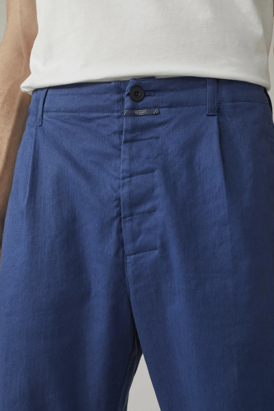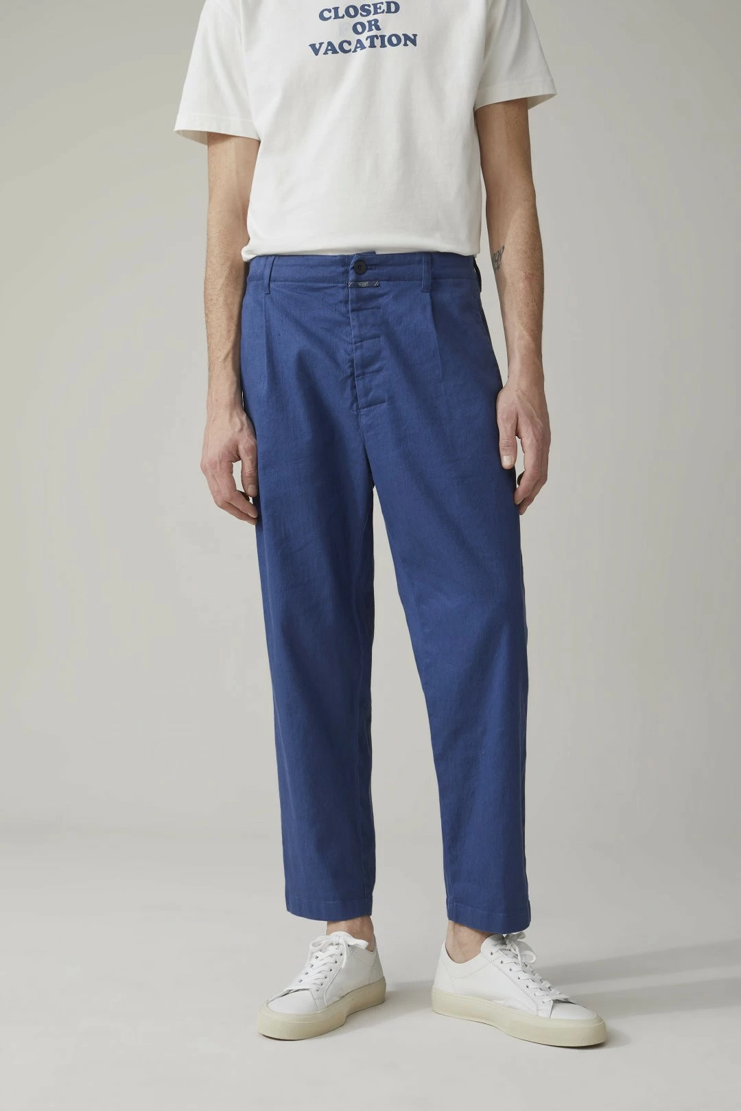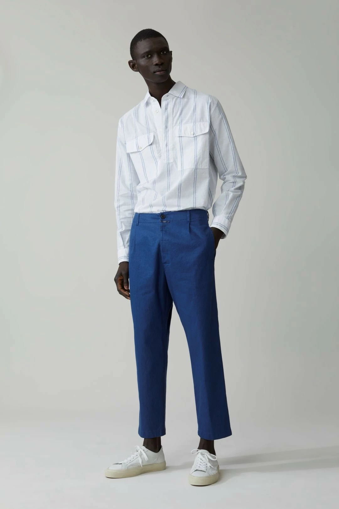Magnifique pantalon en doux tissu de coton-lin italien avec élasthanne, et une fine structure twill et slubs, par Closed pour leur nouvelle Collection Printemps-Été. Pour un style Relaxed tout en restant super classe. La structure des fils de coton et lin, avec ces irrégularités voulues, donne au pantalon un aspect vintage discret.
