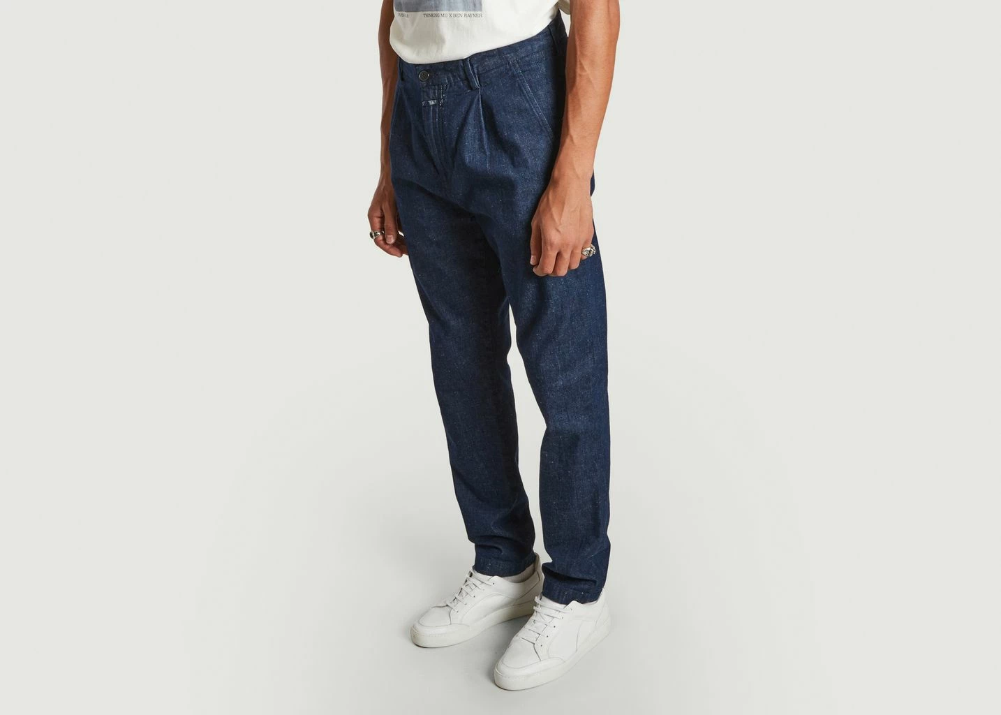 Relaxed fit pants in navy blue made of lightweight viscose fabric with elastane. Featuring side pockets, buttoned pockets and logo rivets on the back, darts at the waist and buttoned pockets, logo rivets on the back, mid-rise waist, tapered leg, shortened length. The chino is one of the essential pieces of the men’s wardrobe. Adopt without hesitation the Porto model from Closed! These sober colored pants will be easy to match with your t-shirts, polo shirts and shirts.