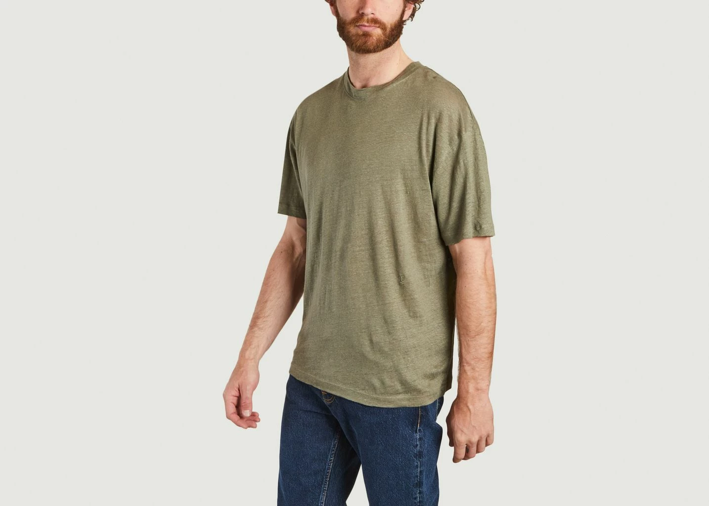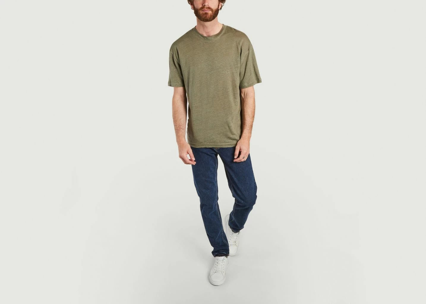 Tee shirt Jersey pure linen very light: • Natural structure. • Round ribbed neckline • Embroidered logo • Short sleeves