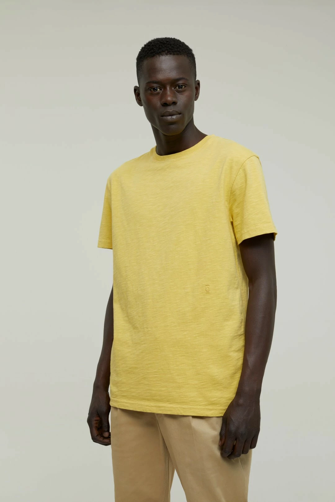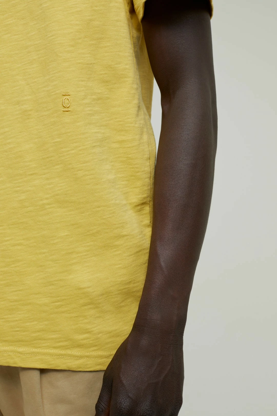 T-Shirt avec encolure ronde côtelée et logo brodé en Slub-Jersey compact de pur coton – les irrégularités dans le fil sont voulues, apportant ainsi au Slub-Jersey une structure vivante. Regular Fit Longueur: env. 73 cm (Taille M) Le modèle (1,87 m) porte la taille M