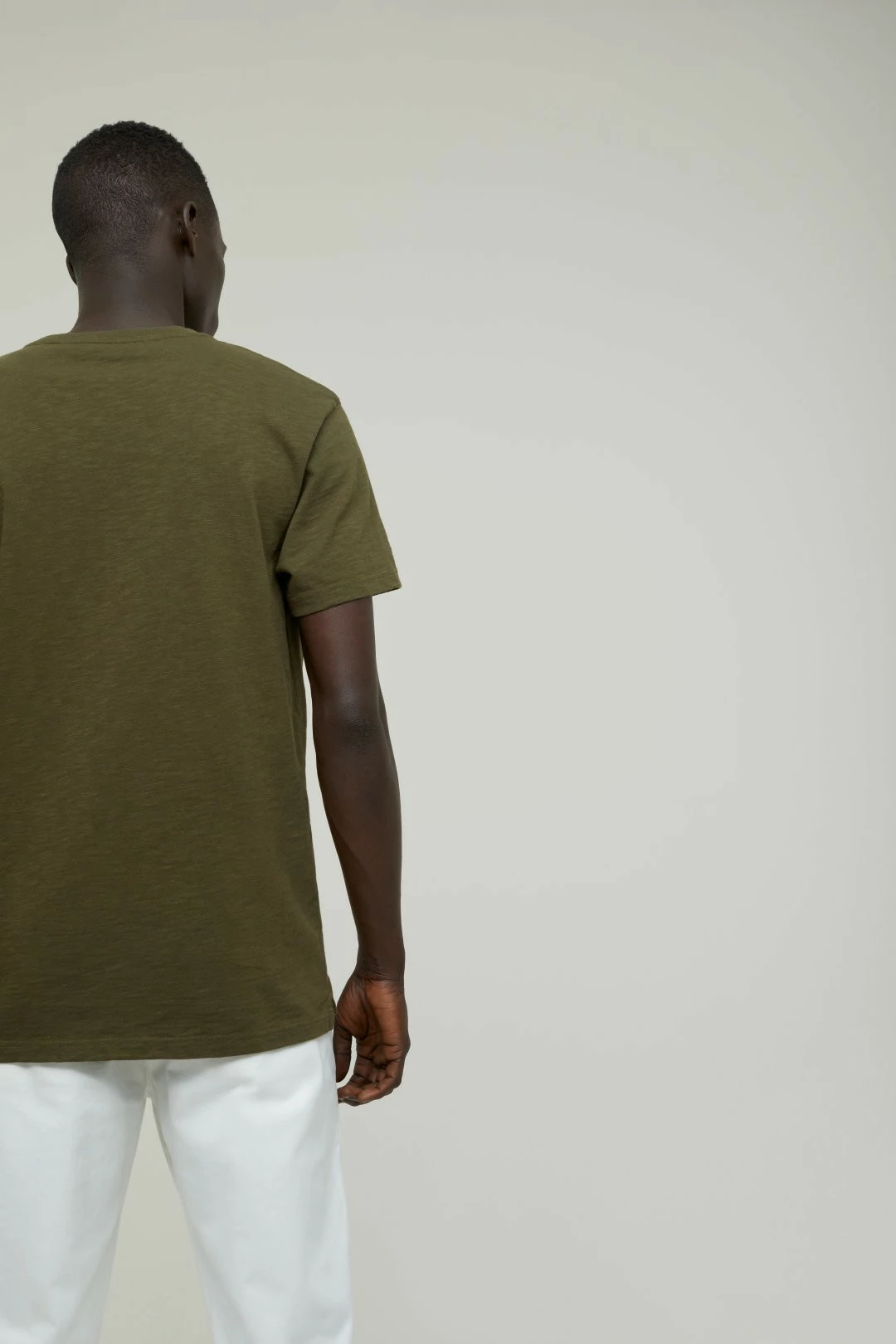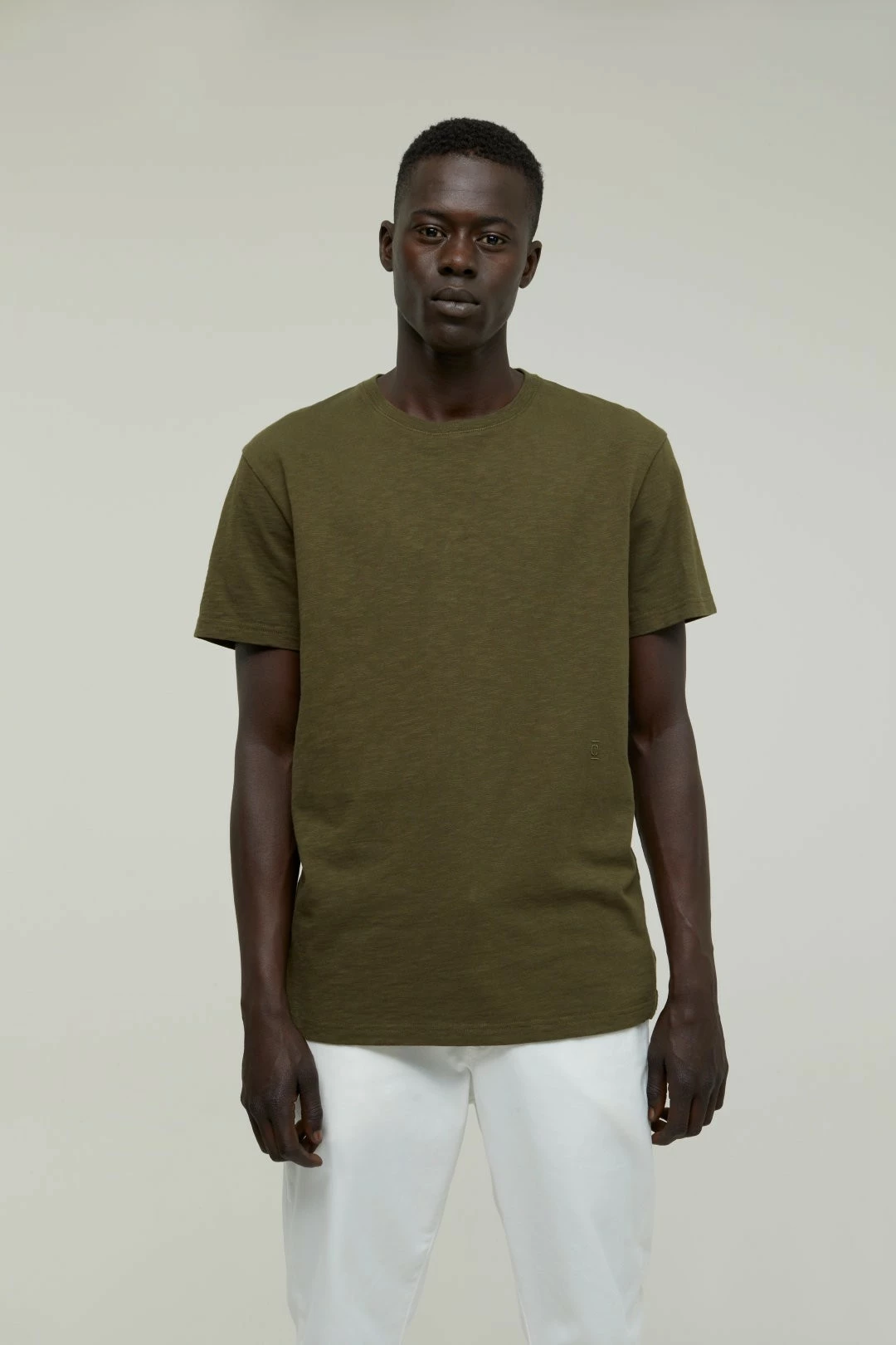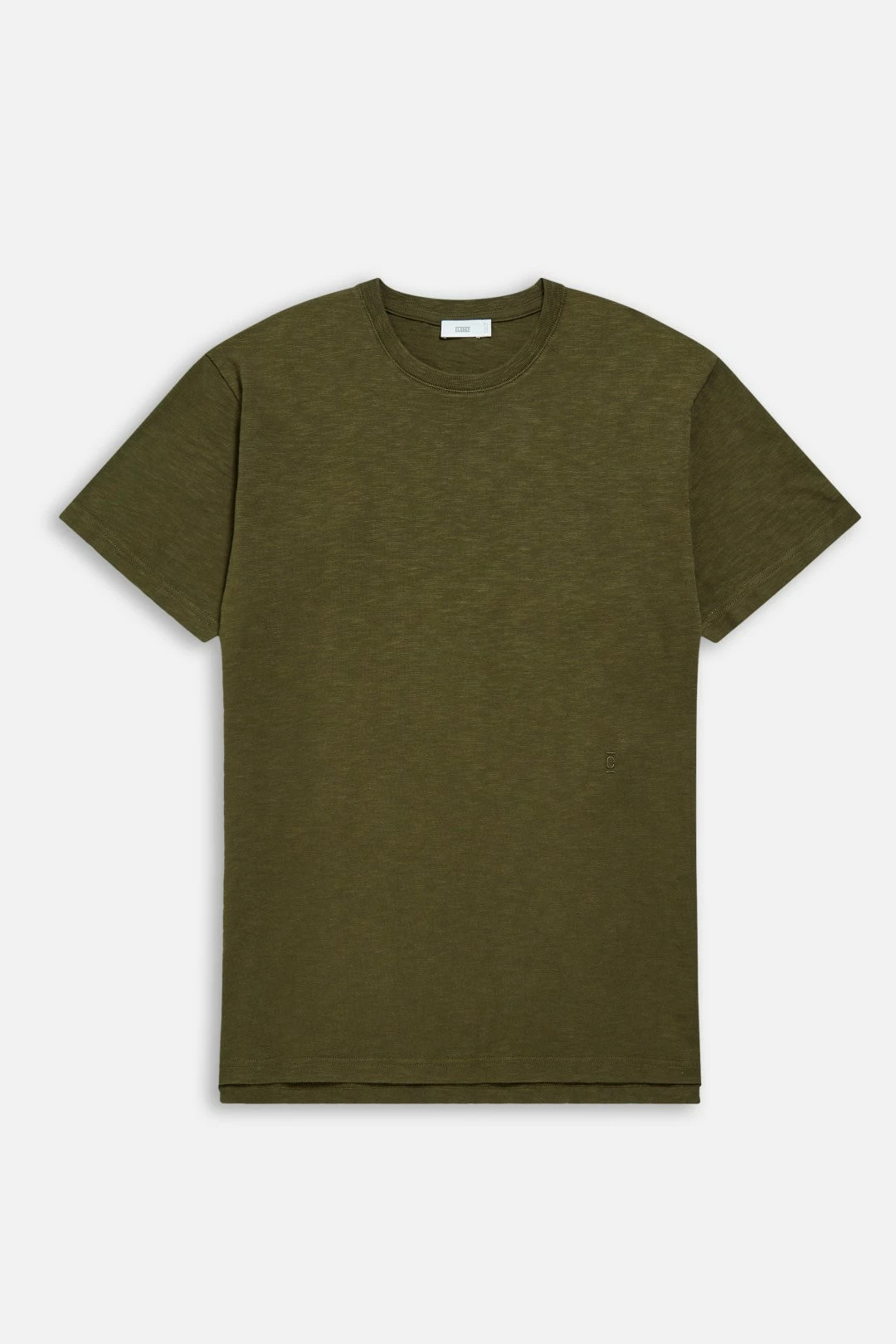 T-Shirt avec encolure ronde côtelée et logo brodé en Slub-Jersey compact de pur coton – les irrégularités dans le fil sont voulues, apportant ainsi au Slub-Jersey une structure vivante. Regular Fit Longueur: env. 73 cm (Taille M) Le modèle (1,87 m) porte la taille M