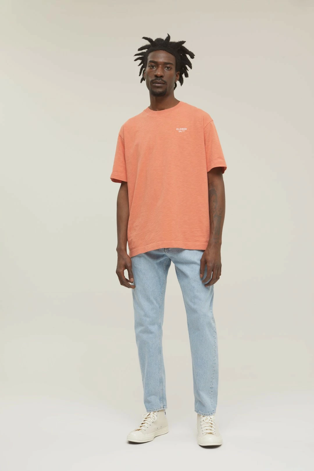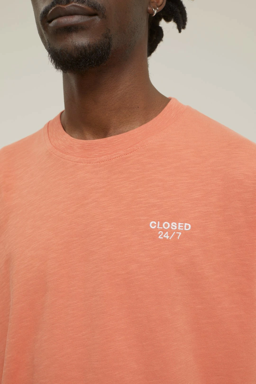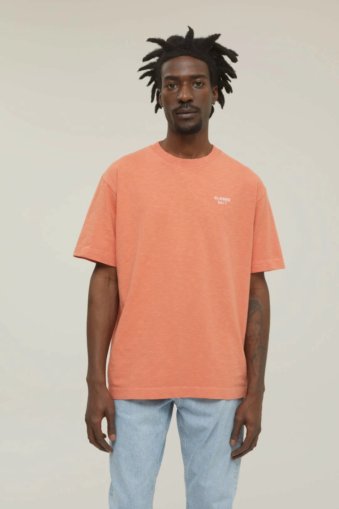T-Shirt avec une coupe décontractée et large en Slub-Jersey organique robuste au toucher sec – les irrégularités intentionnelles dans le fil donnent au Slub-Jersey sa structure vivante. Encolure ronde côtelée, broderie “Closed 24/7” sur la poitrine. Couture au milieu du dos.