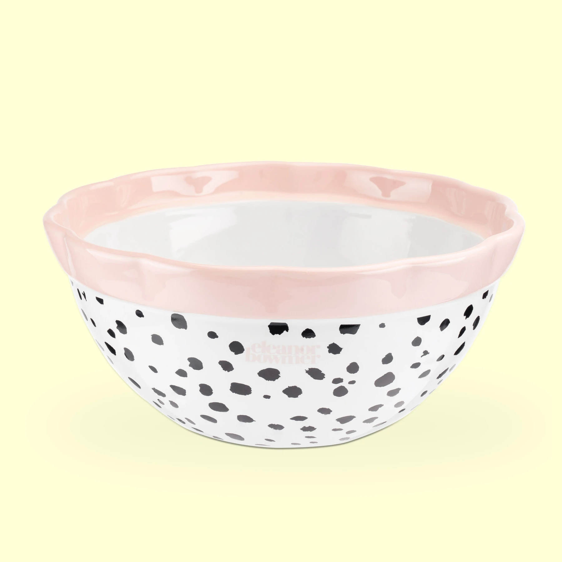 What baking cupboard would be complete without a mixing bowl? Make baking even more fun with this one which features our ‘Dalmatian Dot’ and a beautiful scalloped edge.