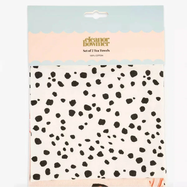 Dry your dishes in style with these eye-catching tea towels from Eleanor Bowmer. Made from 100% premium quality cotton, this set of 2 tea towels is prepared and finished to the highest standard. Featuring Eleanor’s signature Miami Shells print and Dalmatian Dot print on the reverse, with a loop for easy hanging. Super absorbent and perfect for everyday use, match with other accessories from Eleanor Bowmer to complete your stylish kitchen.