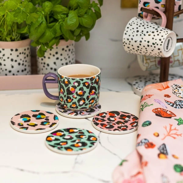 Feature an ‘e’ shaped handle for extra comfort when enjoying your brew. This short mug is printed with the Mint Leopard pattern and made from fine China. The perfect gift for you or someone else to add some colour to your kitchen! All Eleanor Bowmer mugs are made from New Bone China and are of a premium quality. Dimensions: Height 8.5cm Width 12.5cm Dishwasher & Microwave safe. Delivery information: All mugs are delivered in a gift style box.