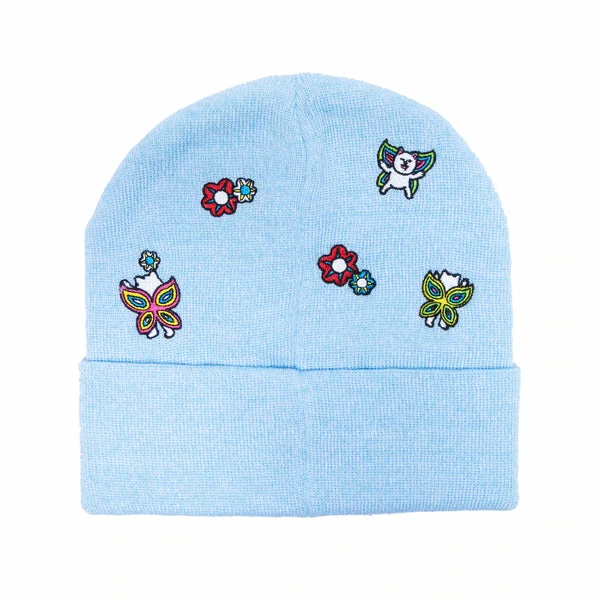 Man this is cute And our model is wearing it properly Please have it cover your eyes We dont wanna see them tears Cause you missed out on this drop 100% Acrylic Promised Land Beanie Embroidered Prisma Ripndip Logo Embroidered Art All Over Beanie Unisex