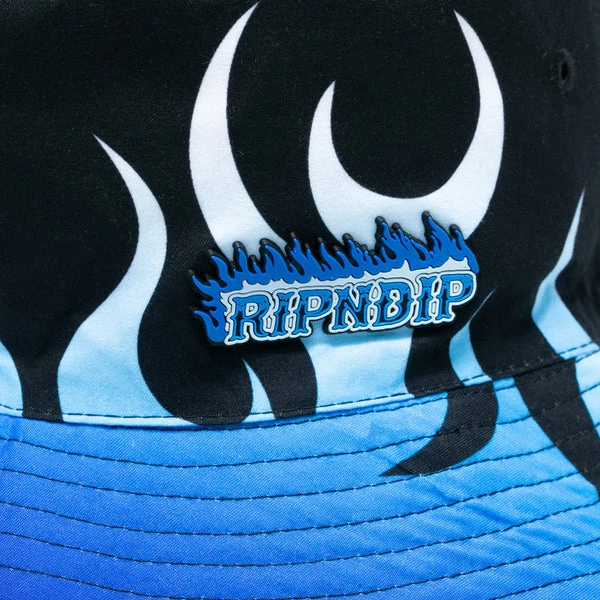 Call the fire Department now We got a major wild fire here Dont even drop that thang and reverse it cause Its hot on the inside too! On fire! Polyester Reversible Bucket With All Over Flames Rubber Ripndip Patch On Both Sides